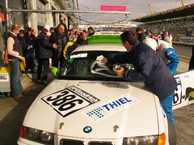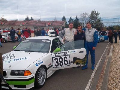 Zum Schluß hat Frank übernommen. Auch mit doch schon recht abgefahrenen Slicks konnte Frank sehr konstant knapp über 10 Minuten fahren und ist mit 10:01:937 Min. eine neue schnellste Runde für meinen M3 gefahren. In der letzten Runde hat Frank das Tempo rausgenommen, um nicht ohne Sprit liegenzubleiben. Da sich unsere Konkurrenz teilweise selber aus dem Weg geräumt hat konnten wir mit nur ein paar Minuten Rückstand einen hervorragenden 3. Platz in der Klasse erreichen.