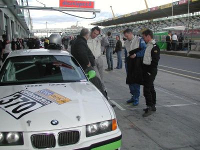 Wir waren alle ganz heiß endlich zu testen wie der "neue" Wagen sich fahren läßt. Tilman war der Erste vormittags auf der GP-Strecke und war begeistert von dem besseren Einlenkverhalten.